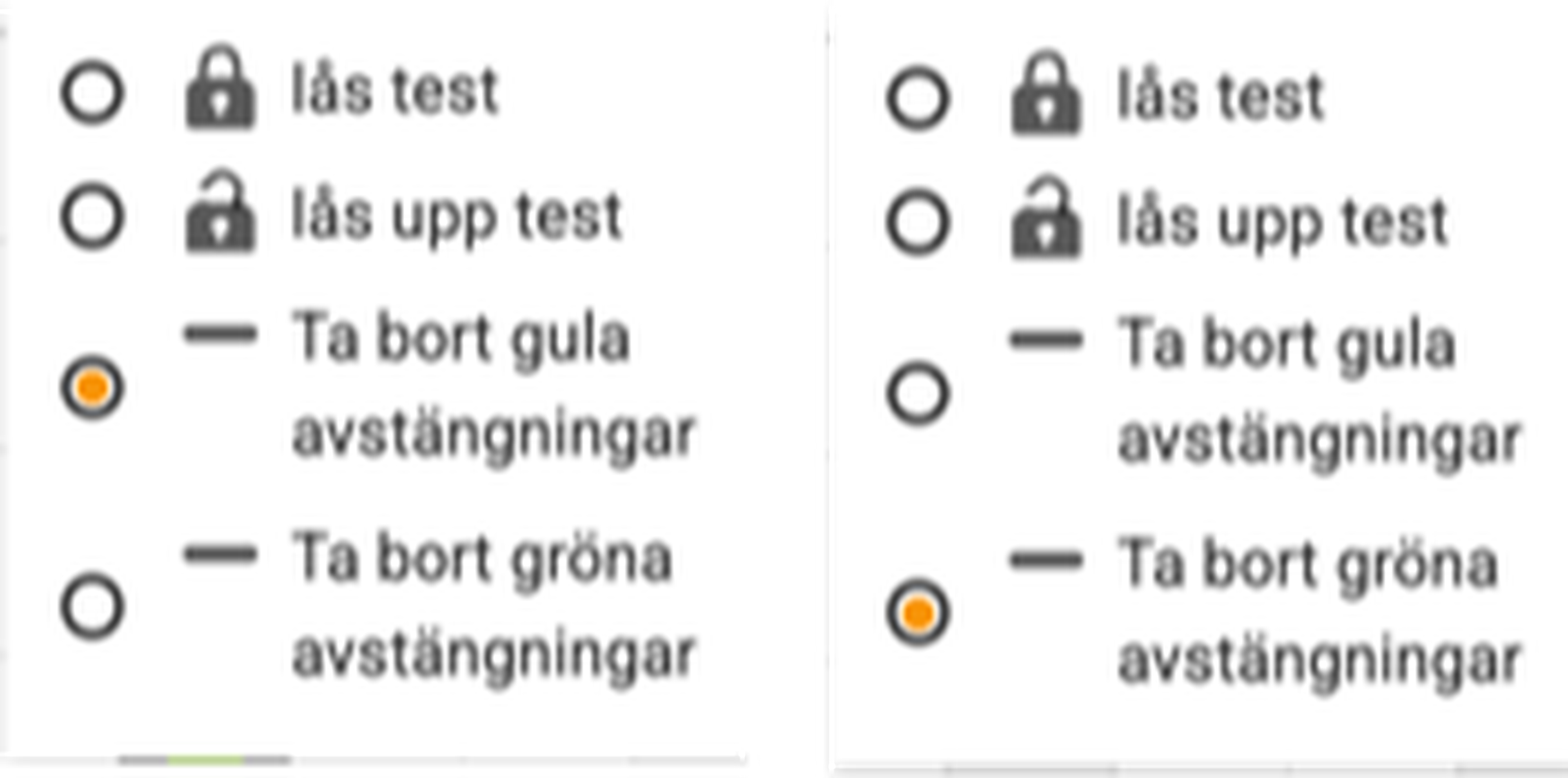 Du kan även välja att ta bort gröna avstängningar och öppna upp för de elever som uppnått grön nivå vid tidigare testtillfälle. Observera dock att detta är något vi avråder från då dessa elever redan har uppvisat en mer än tillräcklig förmåga och testerna inte är konstruerade på ett sådant sätt att de kommer kunna påvisa något progression för dessa elever.